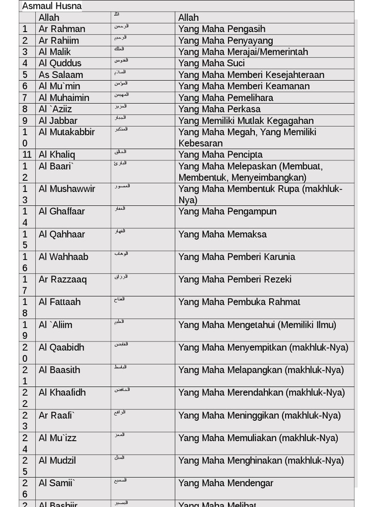 Asmaul Husna Dan Artinya Word Lasopascanner