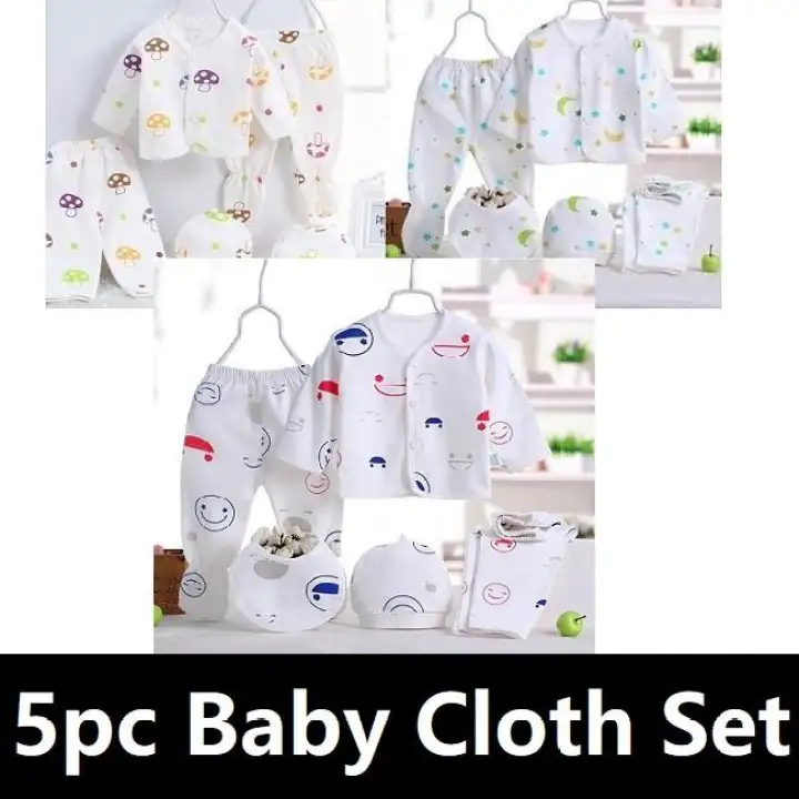 5pcs Set Newborn Baby Unisex Cartoon Printed Set 5 Helai Set Baju Baby Baju Murah Baju Raya Lazada